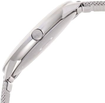 | Features: | Brushed finished, Arabic Numerals silver tone markers, baton hands, matte mesh strap. |