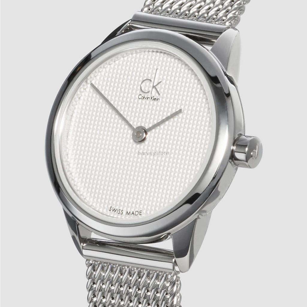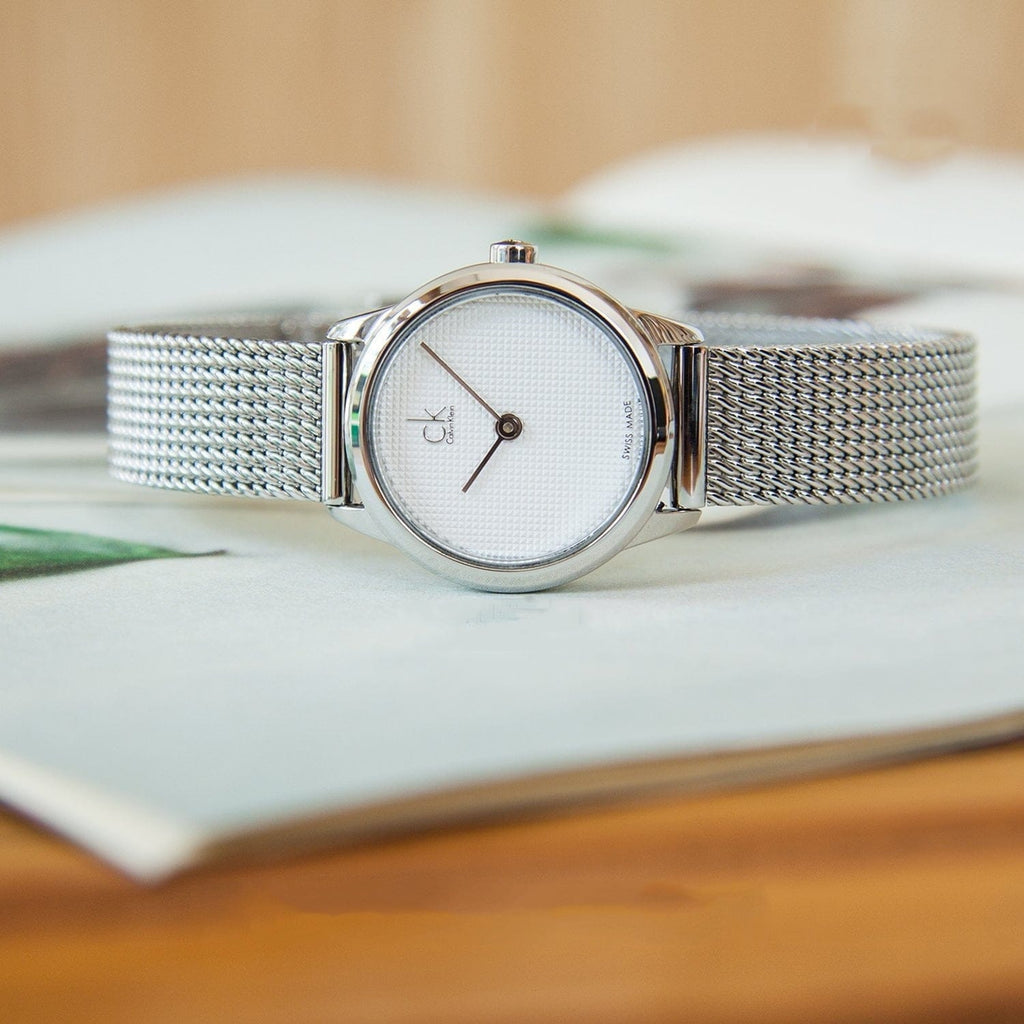 Calvin Klein Minimal White Dial Silver Mesh Bracelet Watch for Women - K3M2312Y