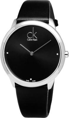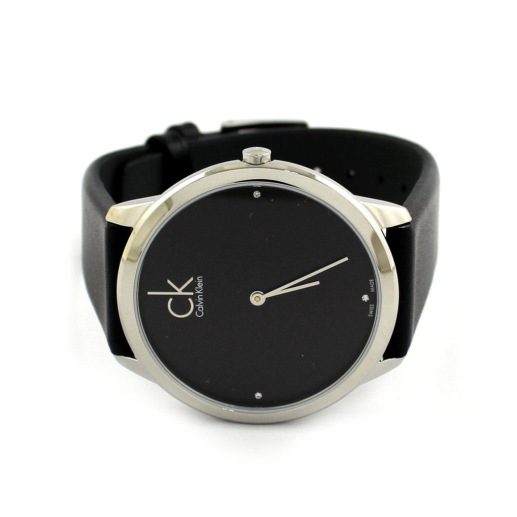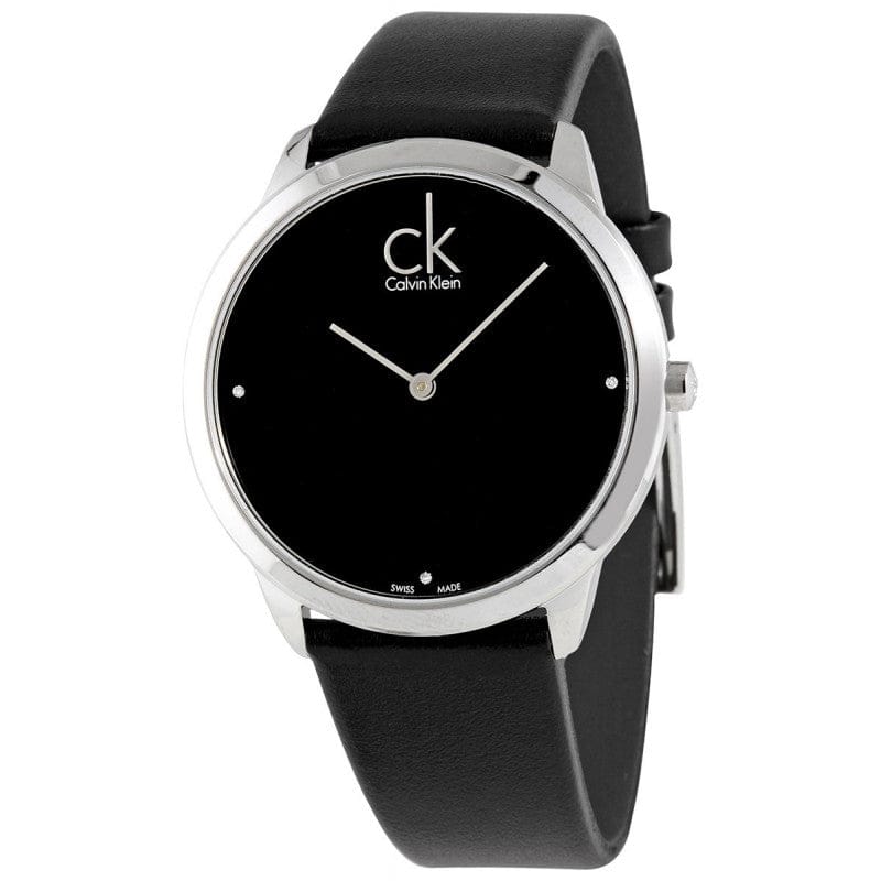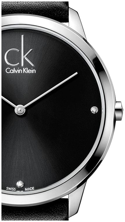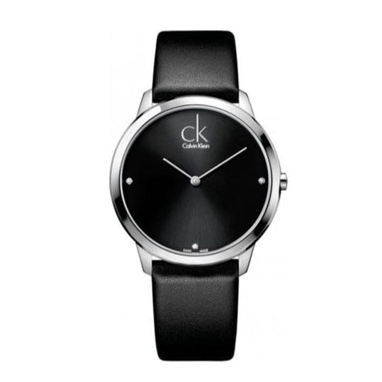 Calvin Klein Minimal Diamonds Black Dial Black Leather Strap Watch for Men - K3M211CS