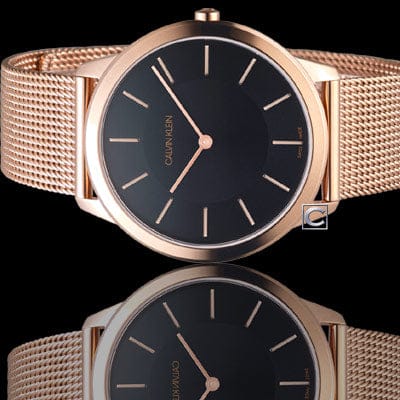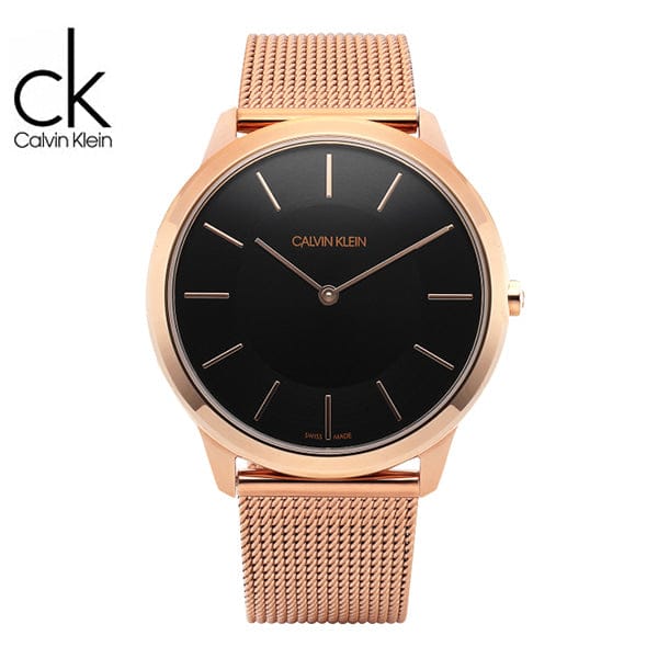 Calvin Klein Minimal Black Dial Rose Gold Mesh Bracelet Watch for Men - K3M2162Y