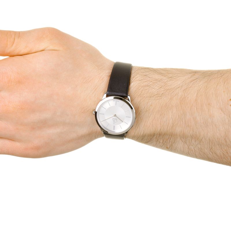 Calvin Klein Minimal Silver Dial Black Leather Strap Watch for Women - K3M221C6