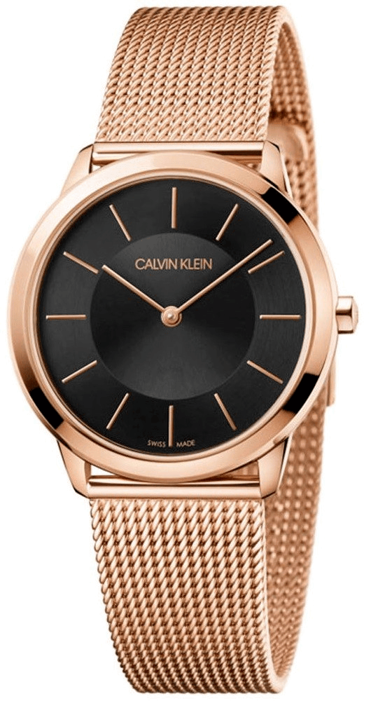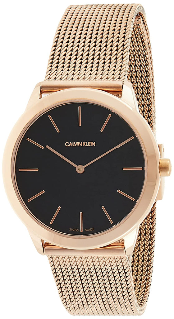 Calvin Klein Minimal Black Dial Rose Gold Mesh Bracelet Watch for Women - K3M2262Y