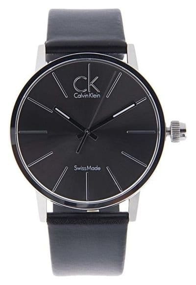 Calvin Klein Post Minimal Black Dial Black Leather Strap Watch for Men - K7621401