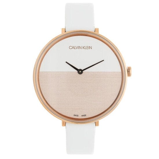 Calvin Klein Rise White Dial White Leather Strap Watch for Women - K7A236LH