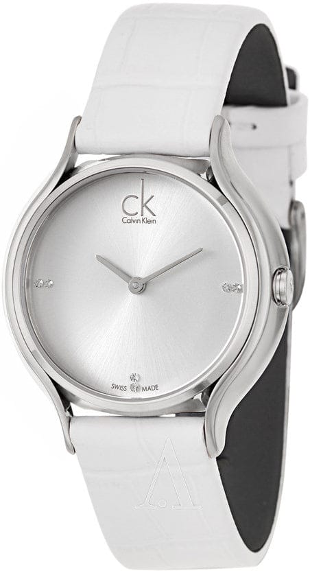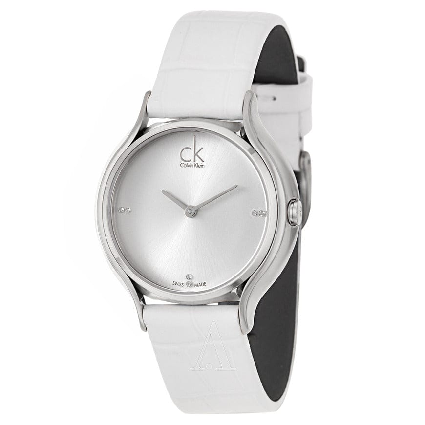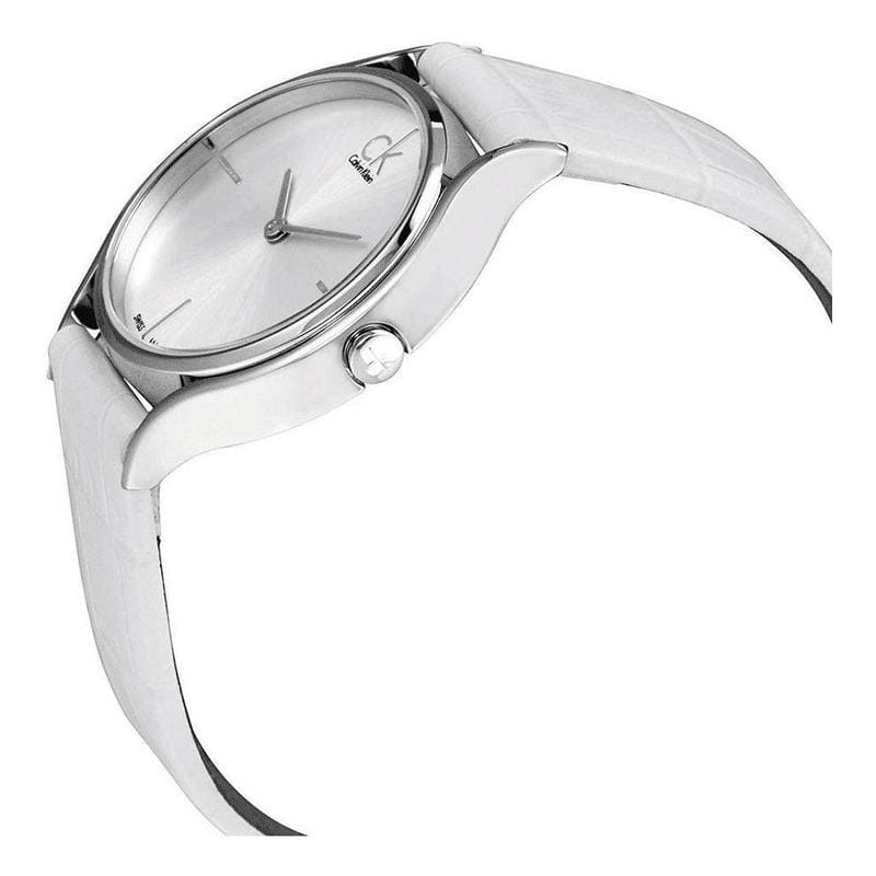 Calvin Klein Skirt White Dial White Leather Strap Watch for Women - K2U231KW