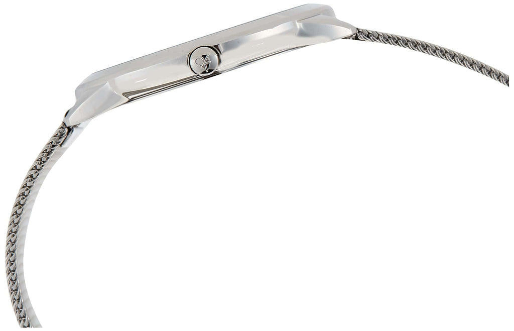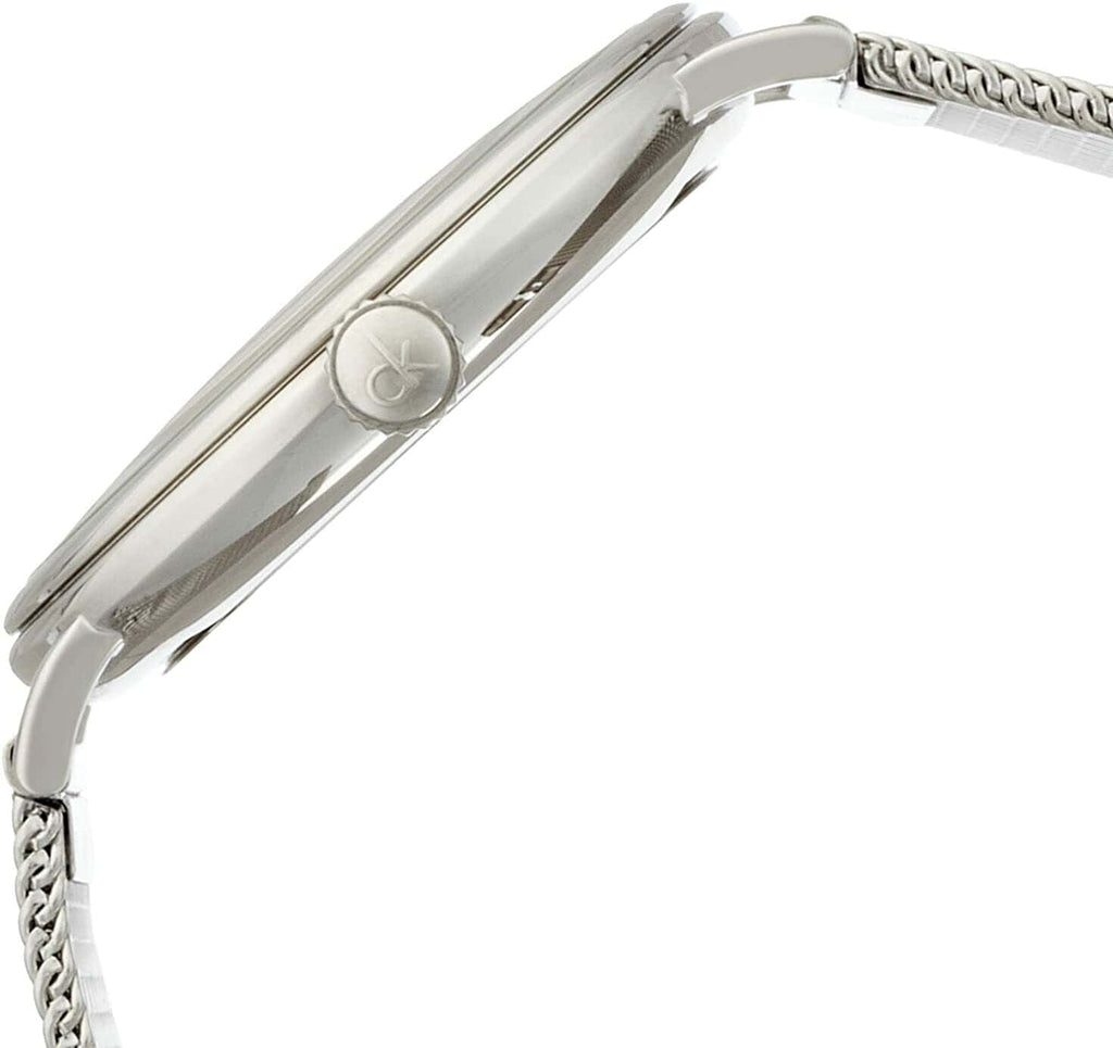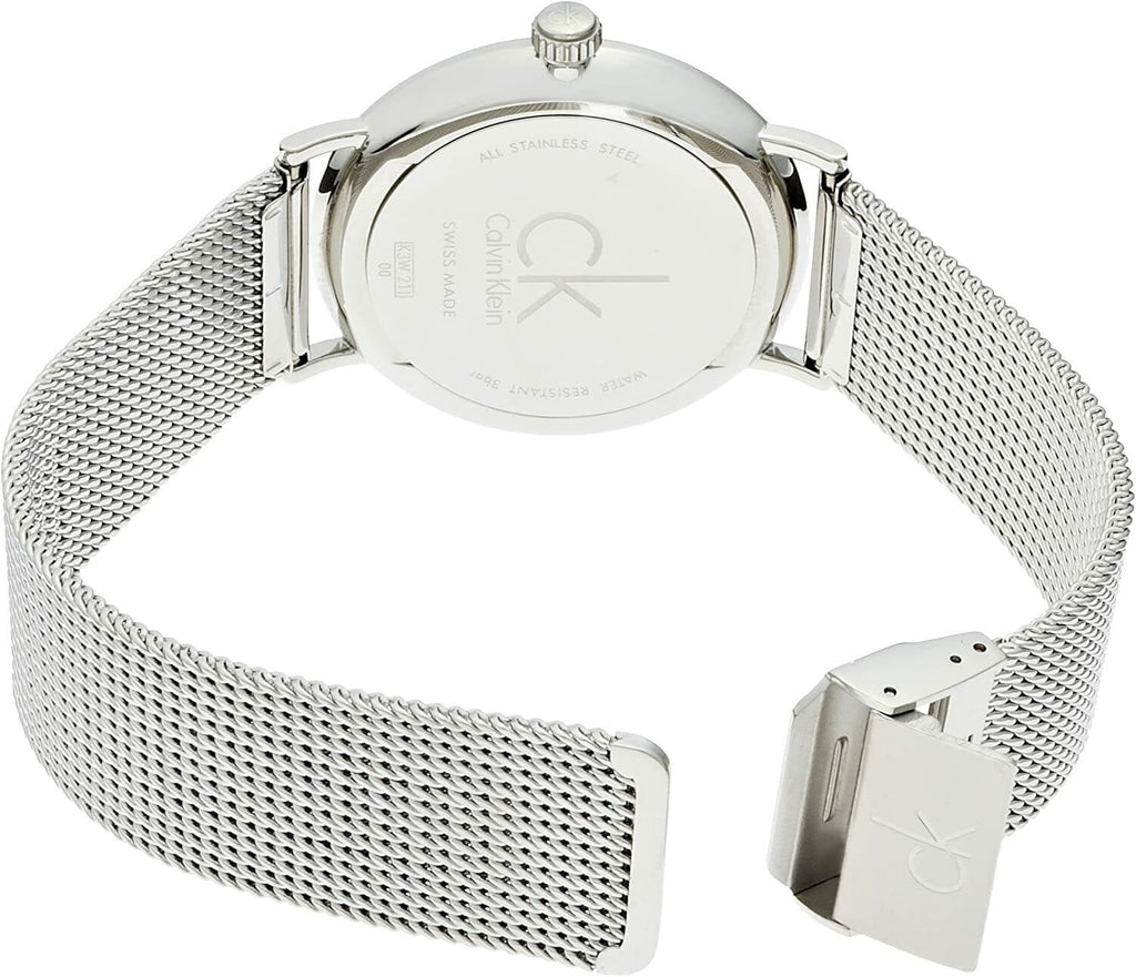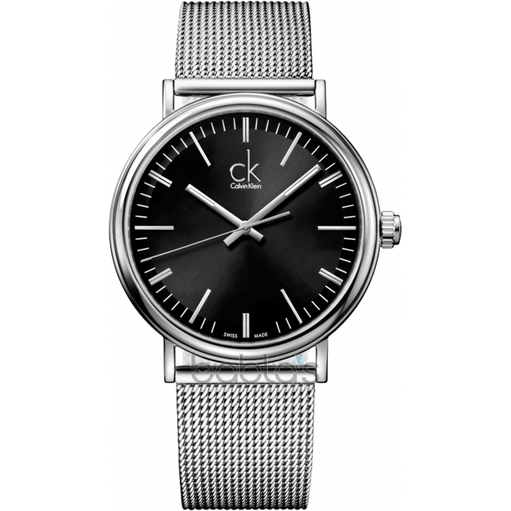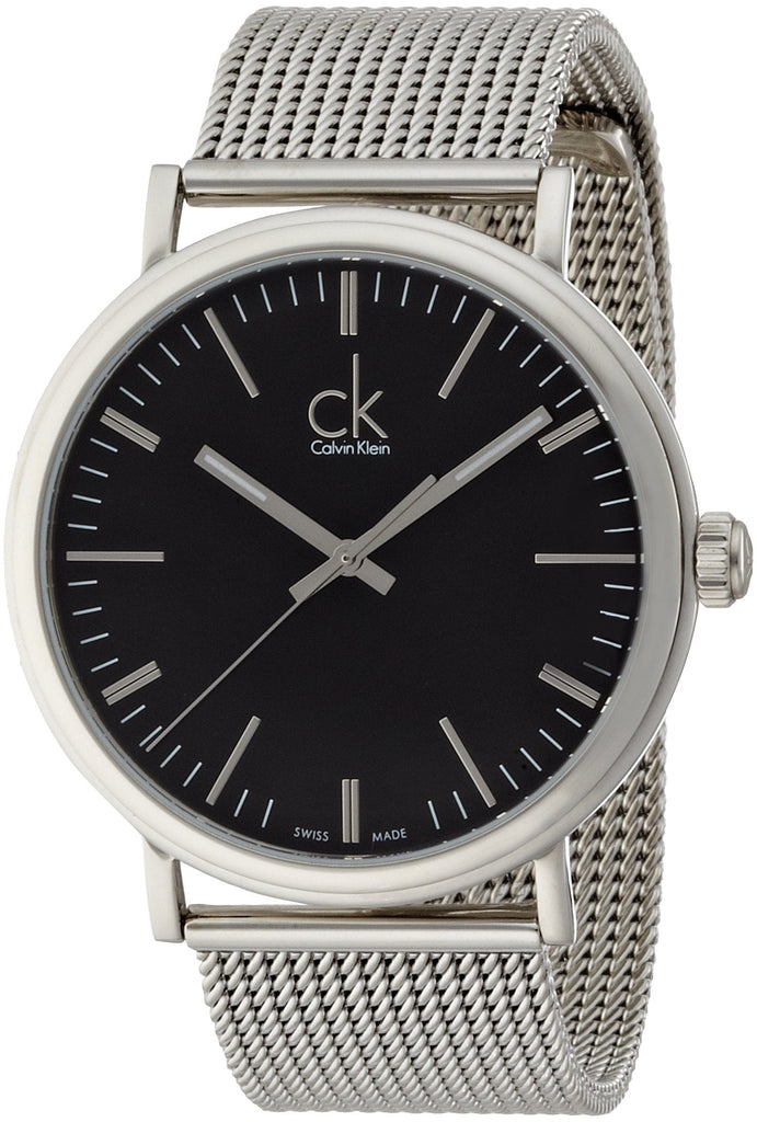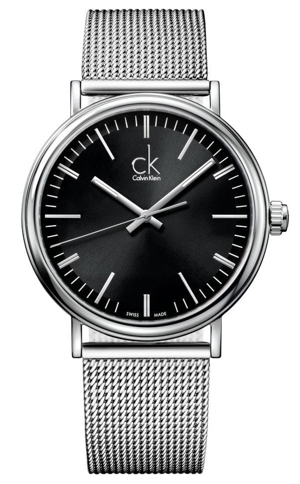 Contrasts are high with this CK watch. Highly polished stainless steel casing and mesh bracelet look great contrasting against the black dial. A great looking watch; small on price for the big nights out