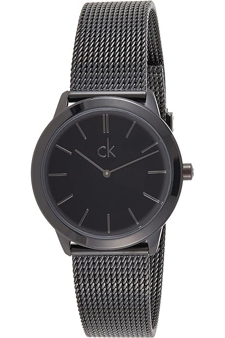 Calvin Klein Minimalist Black Dial Silver Mesh Bracelet Watch for Men - K3M2112X