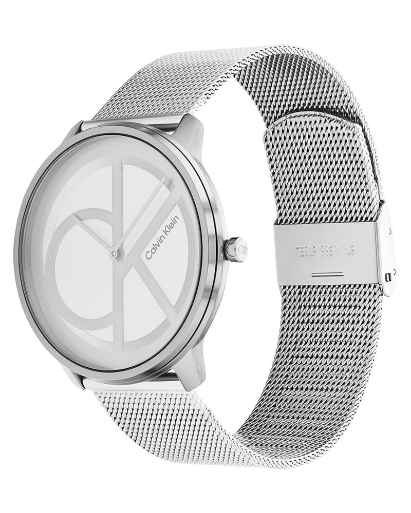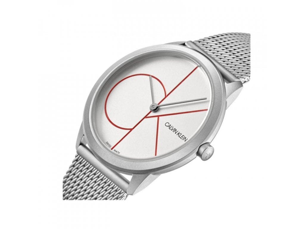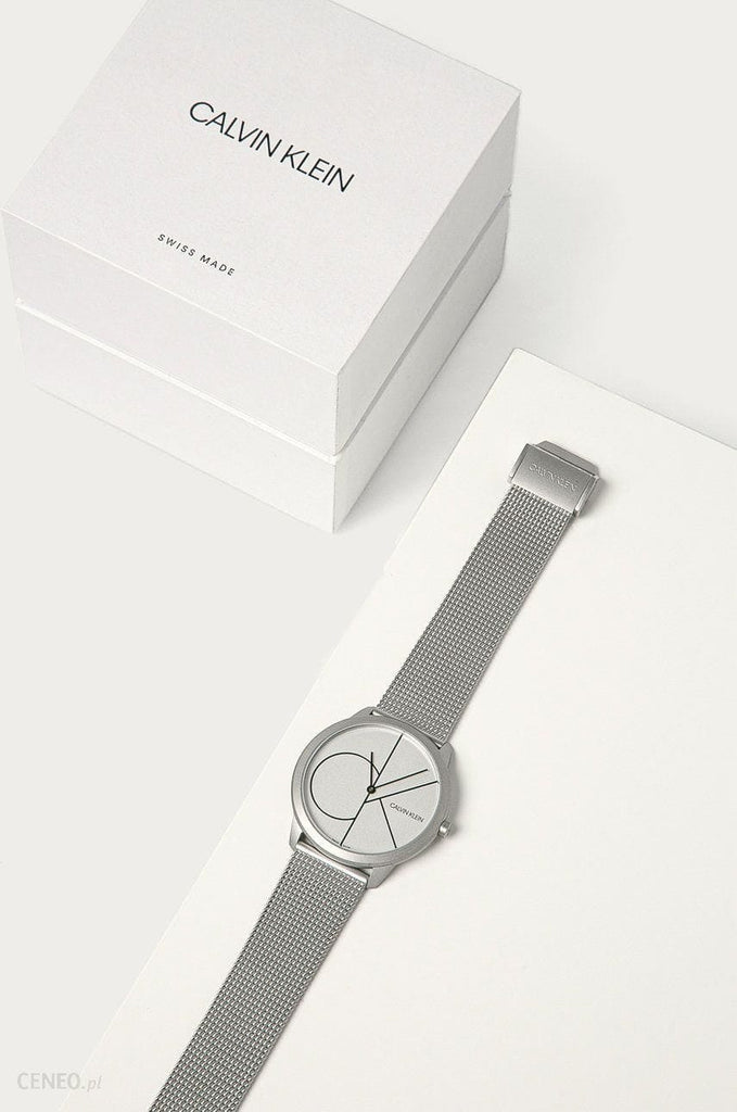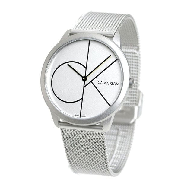 Calvin Klein Minimal White Dial Silver Mesh Bracelet Watch for Men - K3M5115X