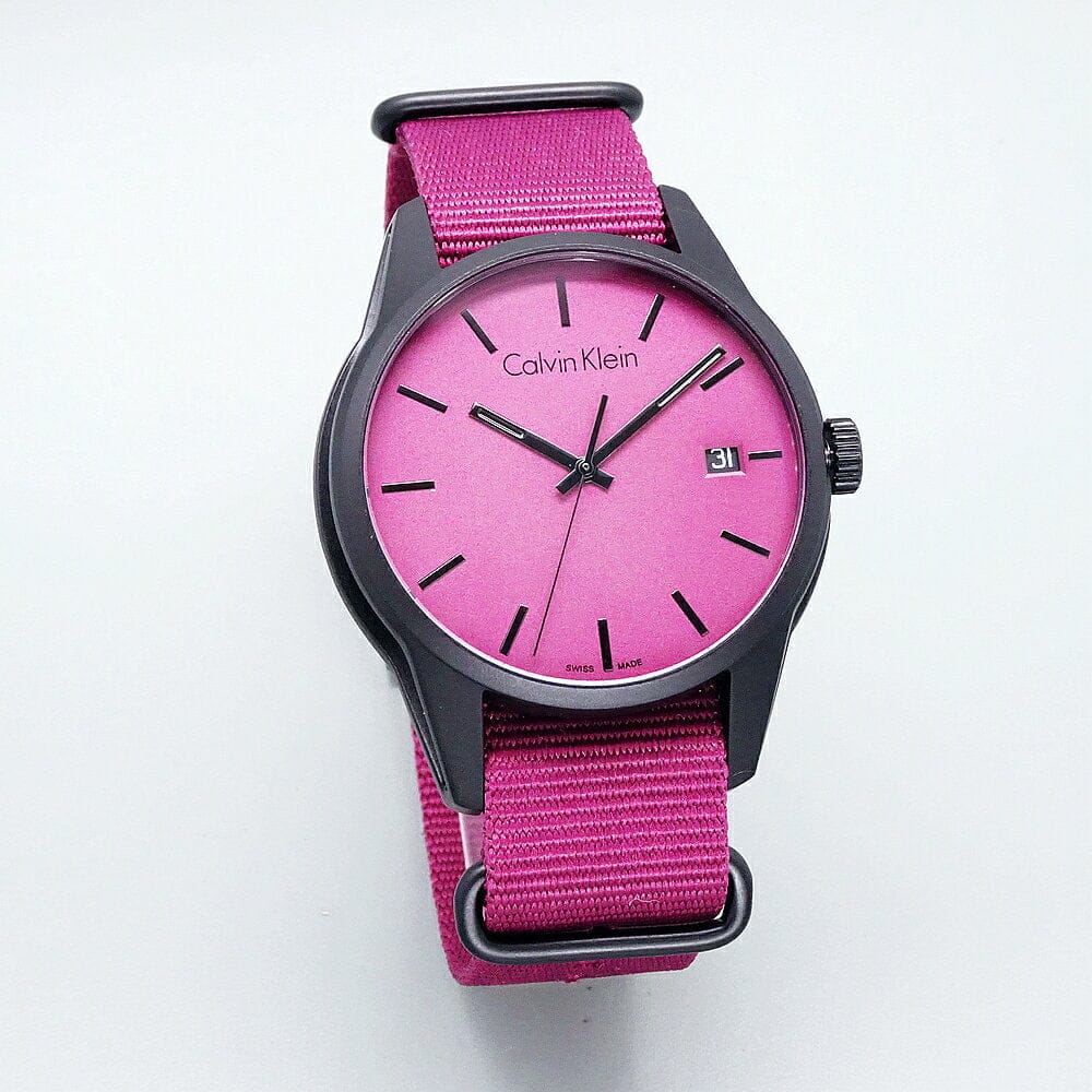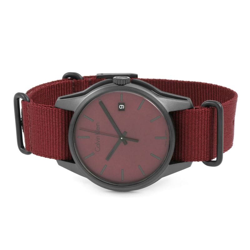 Calvin Klein Tone Maroon Dial Maroon NATO Strap Watch for Men - K7K514UP