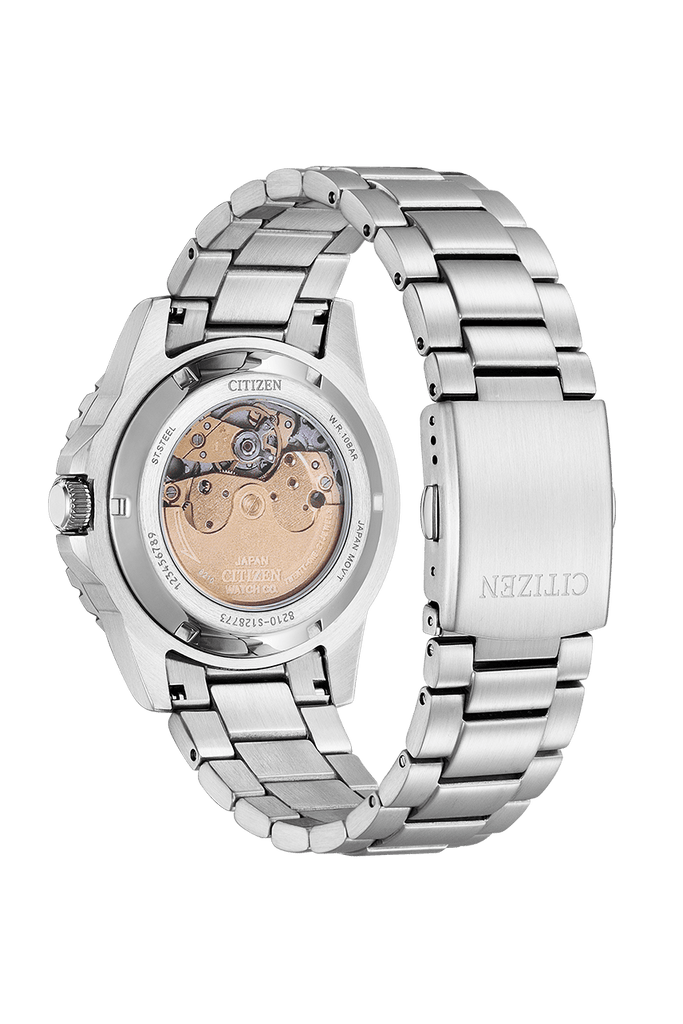 Soar to new heights with this modernized timepiece from Citizen Mechanical Collection. Its modern and contemporary design reflects great craftsmanship and enduring quality. Its sleek aqua blue dial, Date, stainless steel case and bracelet complement its pure and appealing aesthetic.