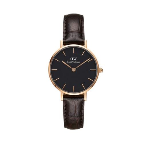 Daniel Wellington Classic Petite York Black Dial Brown Leather Strap Watch For Women - DW00100226