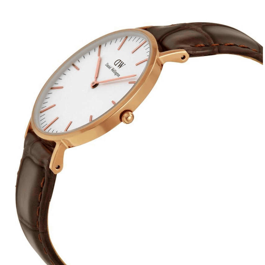 Daniel Wellington Classic York White Dial Brown Leather Strap Watch For Women - DW00100038