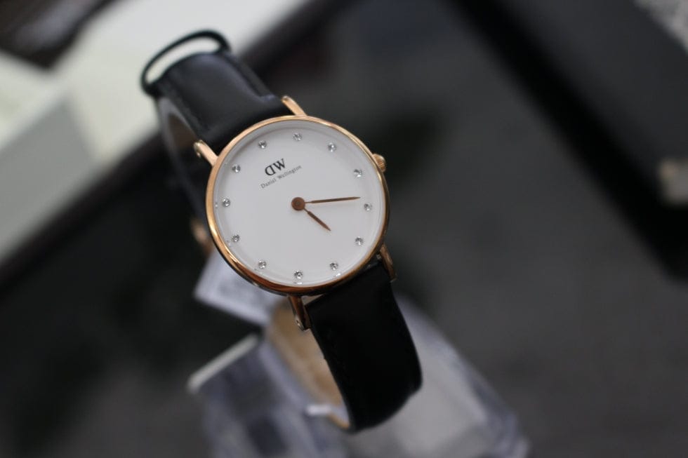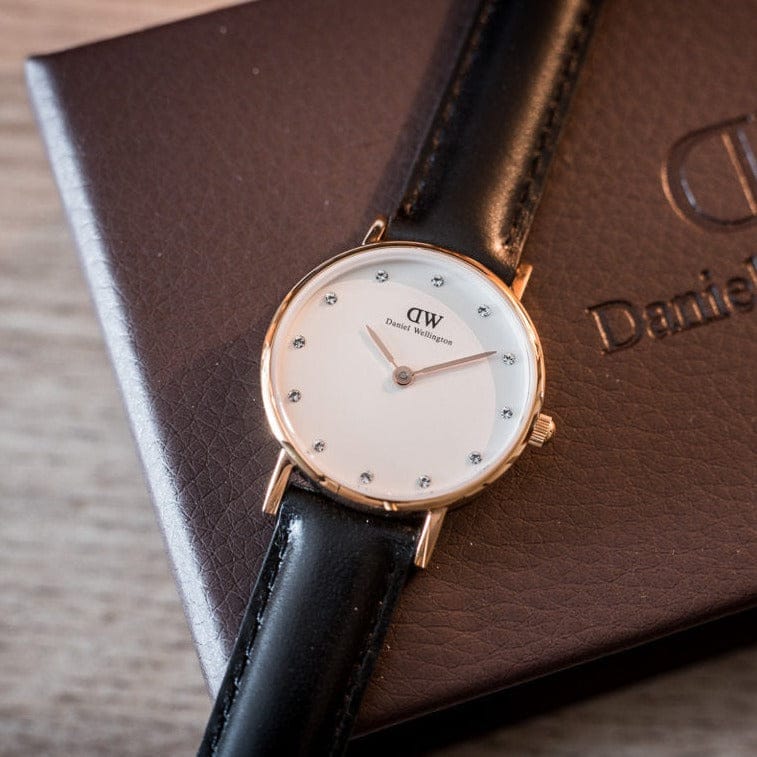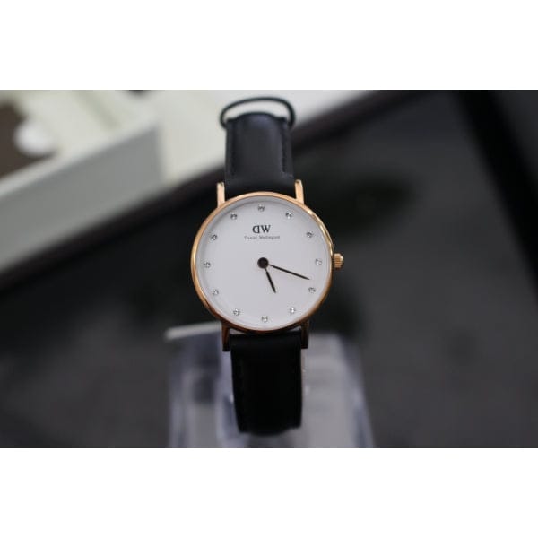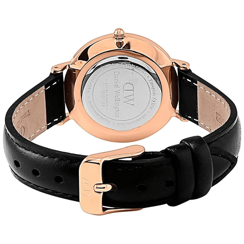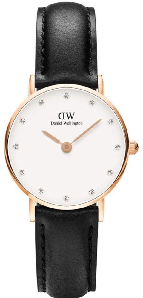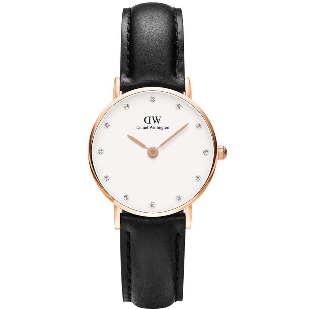 Daniel Wellington Classy Sheffield White Dial Black Leather Strap Watch For Women - DW00100060