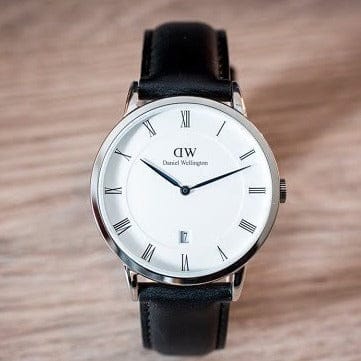 A two-digit date display for the current calendar day is typically found on Daniel Wellington watches at the 6 o'clock position and adds another useful function to the analogue watch. The two blue clock hands for minutes and hours are tapered and are the only “splash of color” in this minimalist men’s watch .