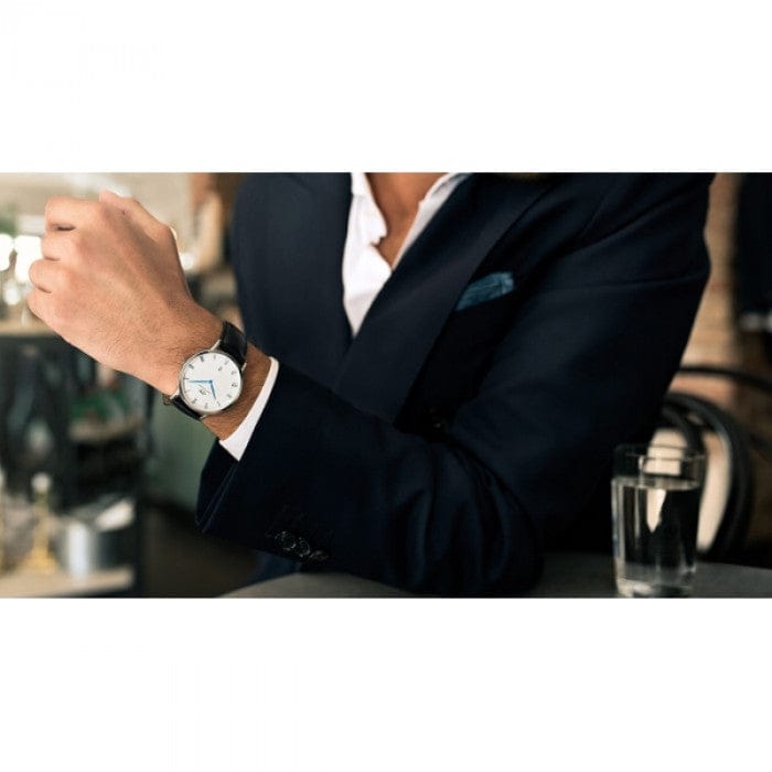 This really beautiful men's watch from Daniel Wellington impresses with its classic details and subtle details. The pure white dial with the fine Roman numerals looks very elegant and makes the Dapper Sheffield wristwatch for men an ideal business accessory.