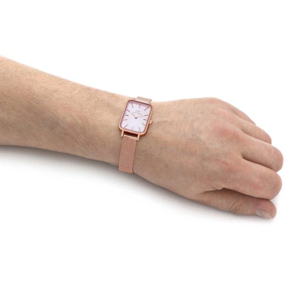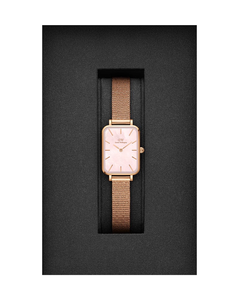 Daniel Wellington Quadro Pressed Melrose Pink Dial Pink Mesh Bracelet Watch For Women - DW00100510