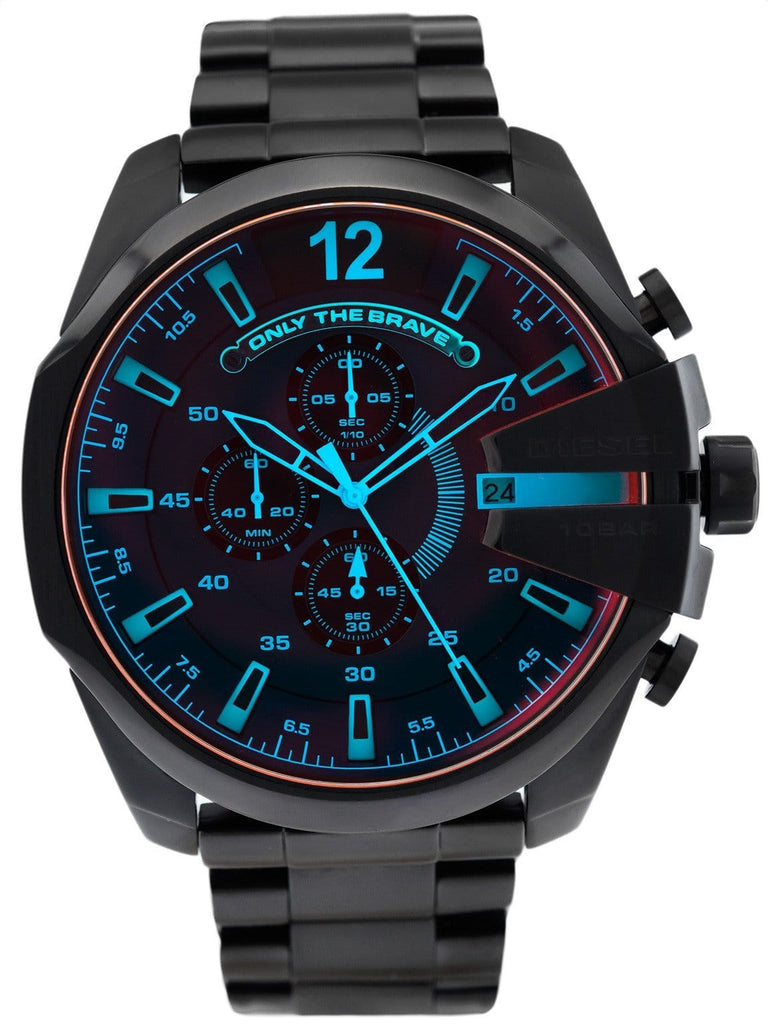Diesel Mega Chief Black Dial Black Steel Strap Watch For Men - DZ4318