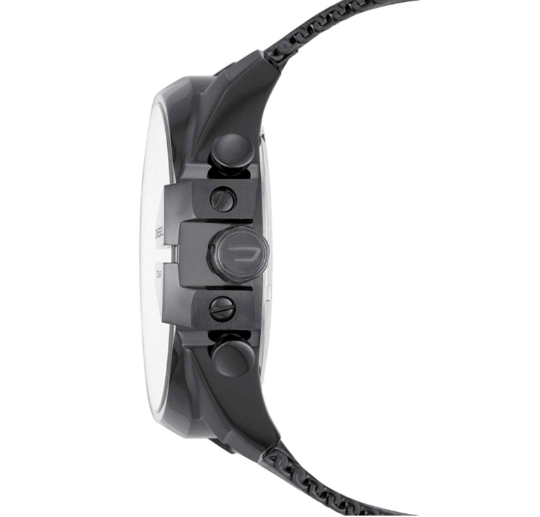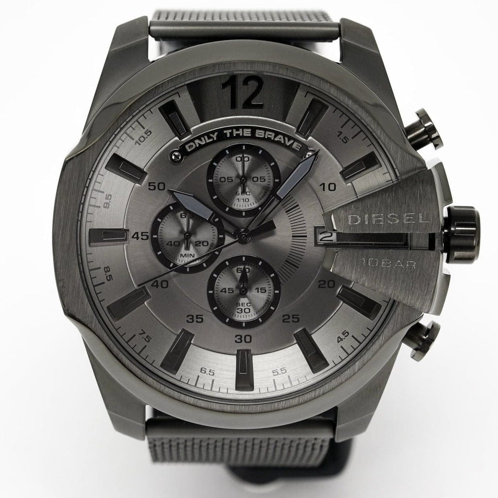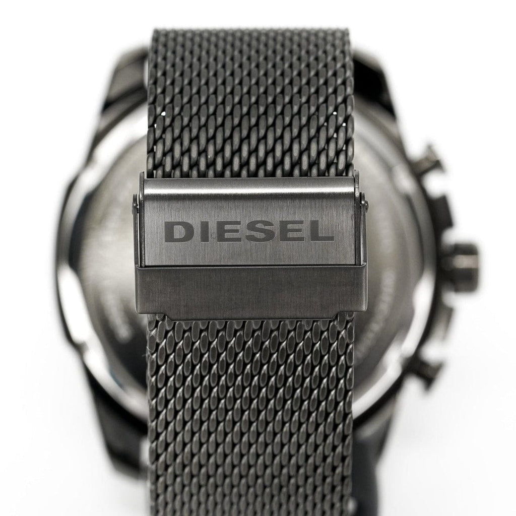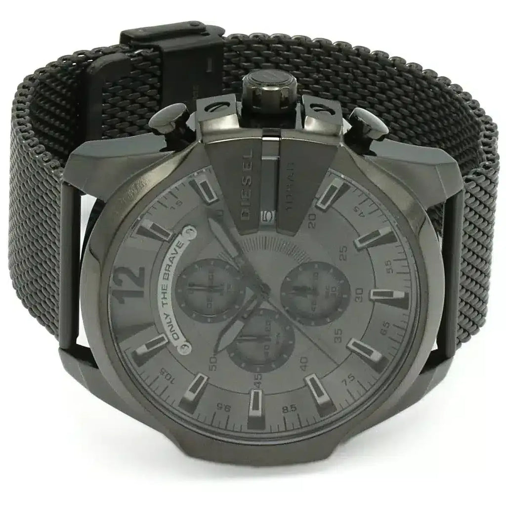 Diesel Mega Chief Chronograph Black Dial Black Steel Strap Watch For Men - DZ4527