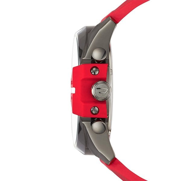 Diesel Mega Chief Chronograph Black Dial Red Silicone Strap Watch For Men - DZ4427