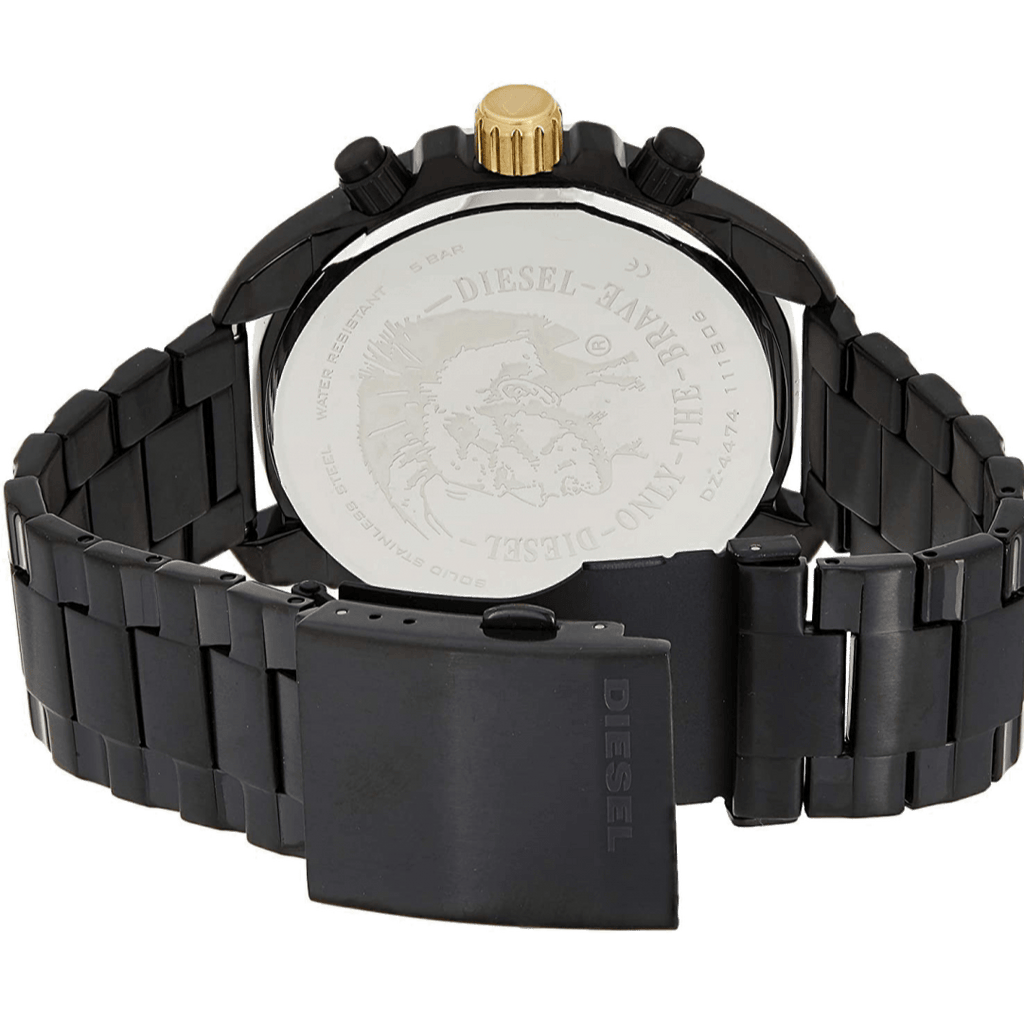 Diesel Mega Chief Chronograph Grey Dial Black Steel Strap Watch For Men - DZ4479