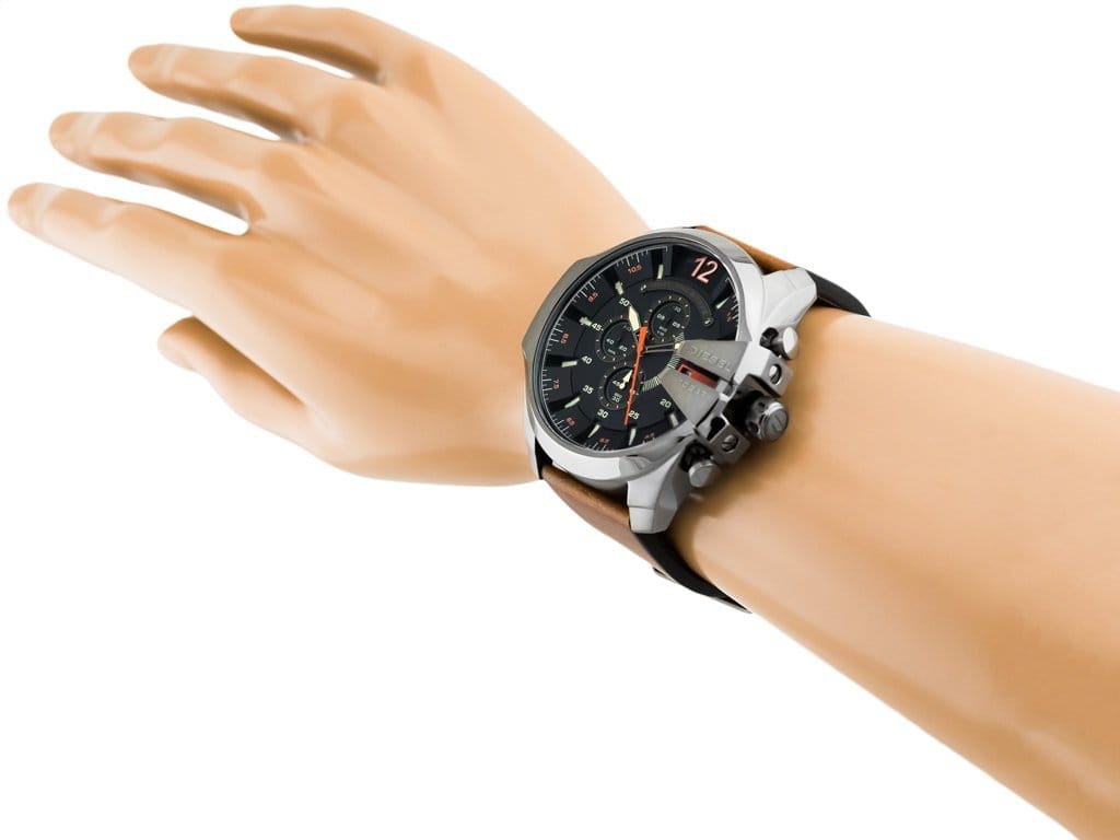Diesel Mega Chief Quartz Chronograph Brown Leather Strap Watch For Men - DZ4343