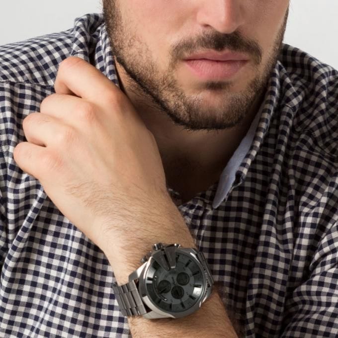 Diesel Mega Chief Chronograph Grey Dial Gunmetal Men's Watch - DZ4282