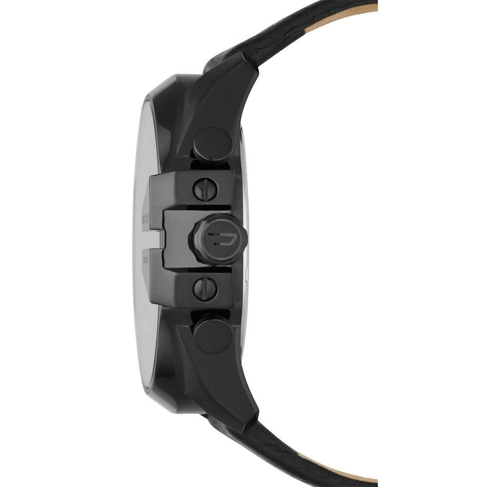Diesel Mega Chief Chronograph Black Dial Black Leather Strap Watch For Men - DZ4291