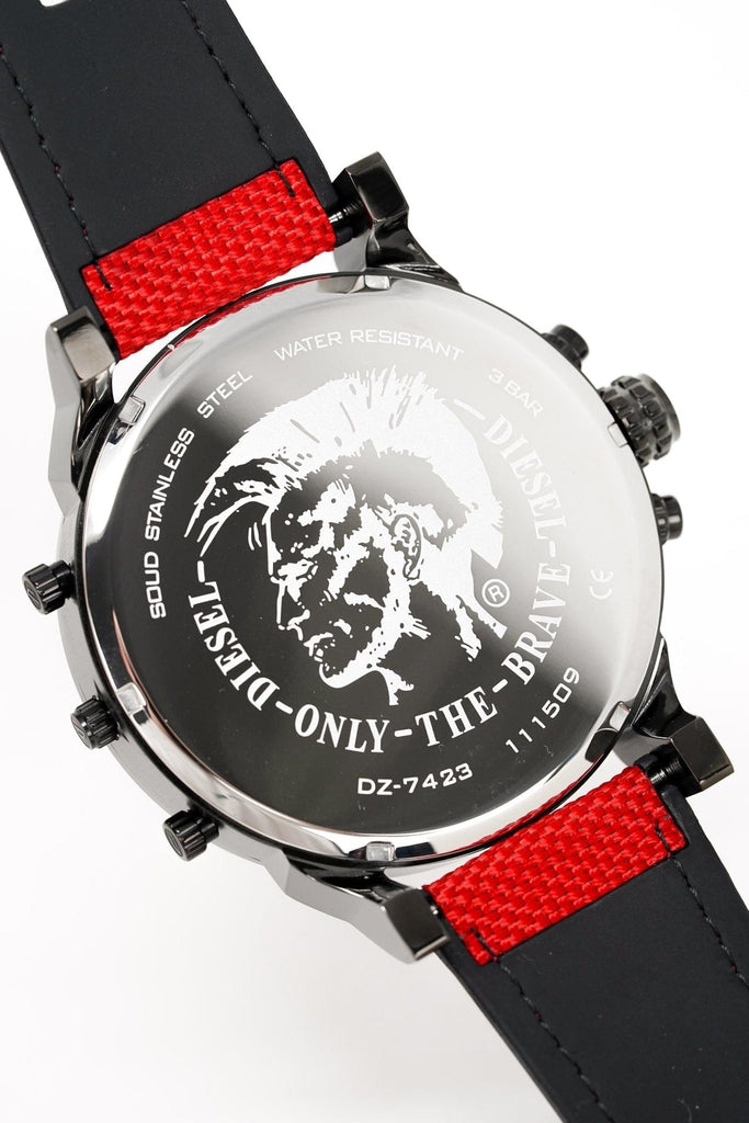 Diesel Mr Daddy 2.0 Chronograph Grey Dial Red Rubber Strap Watch For Men - DZ7423