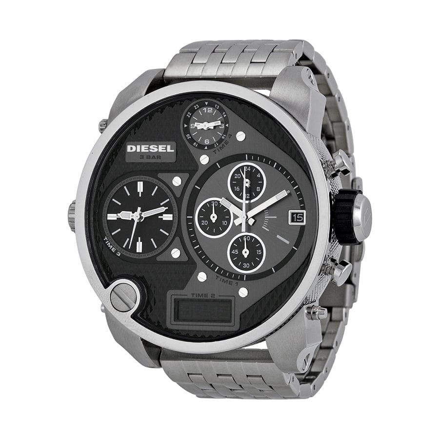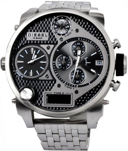 This is a high-quality surgical stainless steel Diesel Big Daddy DZ7221. Built to perform and last for years. It looks solid and its performance is also rock solid. It offers water resistance up to a depth of 100 feet or 30 meters. The watch is known for its wonderful design and workmanship. It offers four Japanese movements and an elegant date function with chronograph.