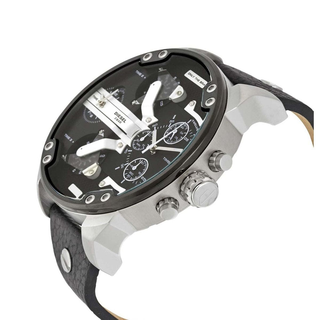 Diesel Mr Daddy Black Dial Black Leather Strap Watch For Men - DZ7313