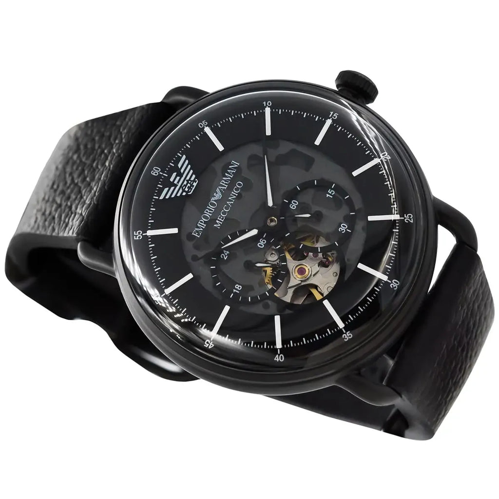 Emporio Armani Aviator Chronograph Black Dial Black Leather Strap Watch For Men - AR60028