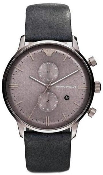 Emporio Armani Classic Grey Dial Grey Leather Strap Watch For Men - AR0388