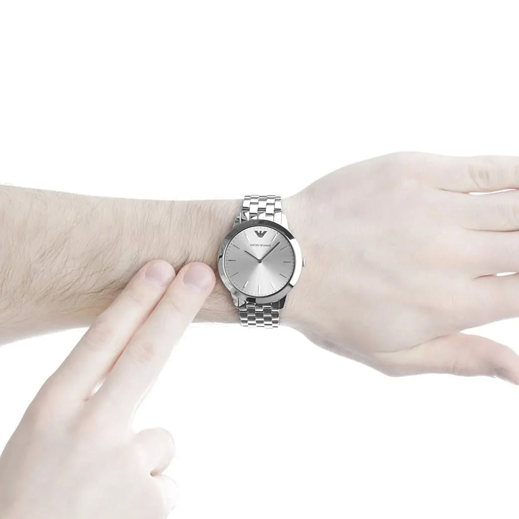 Emporio Armani Classic Quartz Silver Dial Silver Steel Strap Watch For Men - AR1745