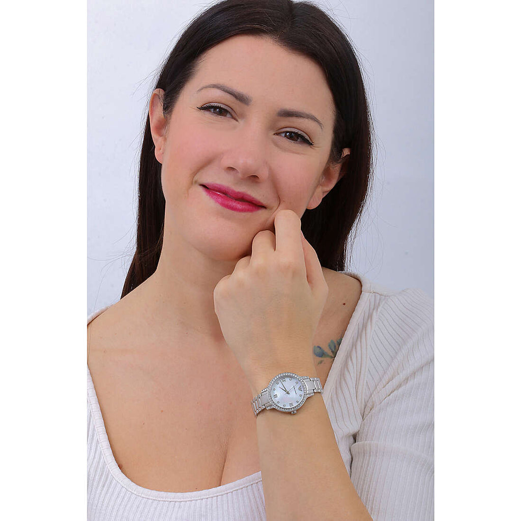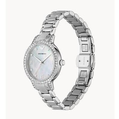 Emporio Armani Cleo Crystals Mother Of Pearl Dial Silver Steel Strap Watch For Women - AR11484