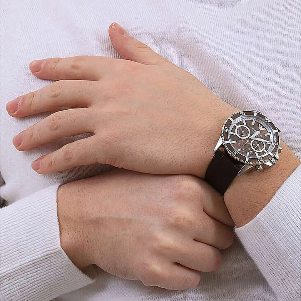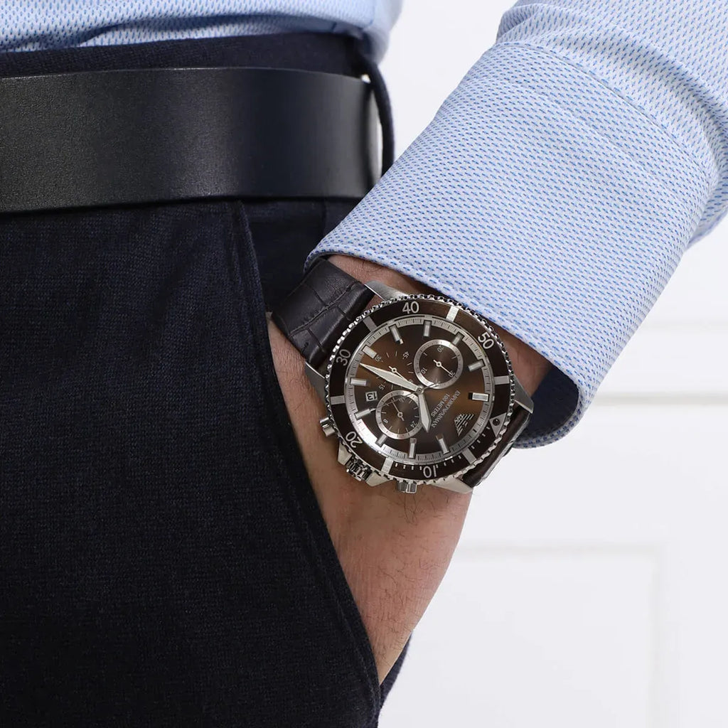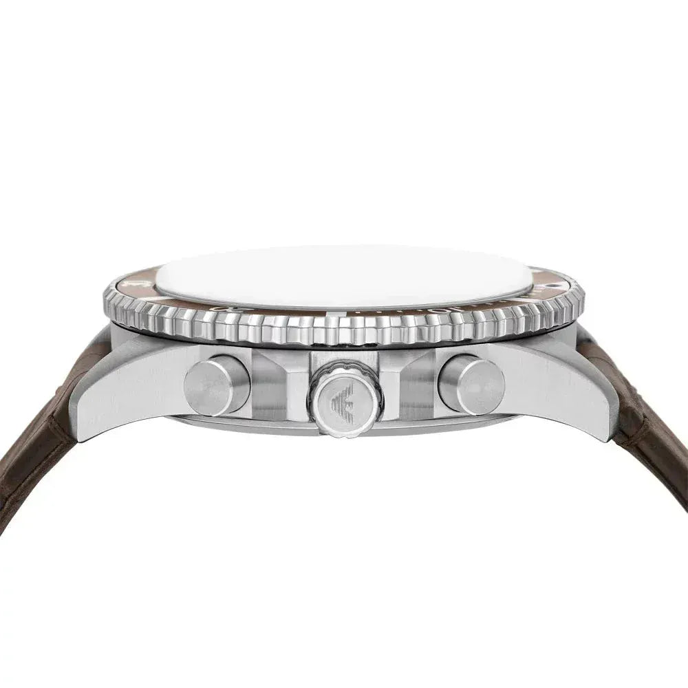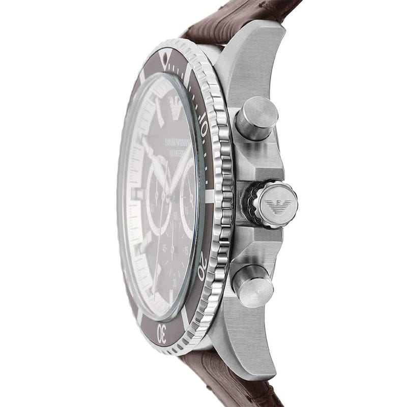 Emporio Armani Diver Chronograph Brown Dial Brown Leather Strap Watch For Men - AR11486