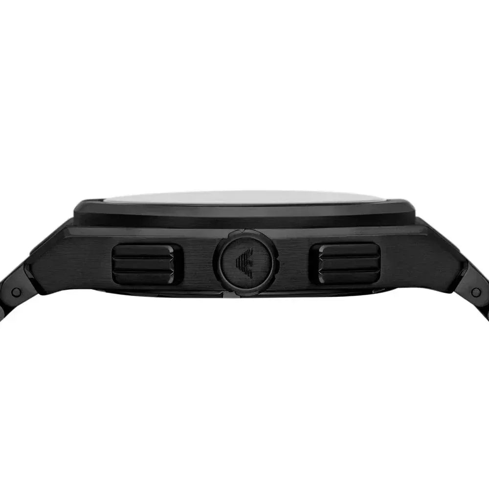 Offering unparalleled precision, this designer watch from Emporio Armani boasts a smooth round face and is fitted with sub-dial chronographs for functionality.