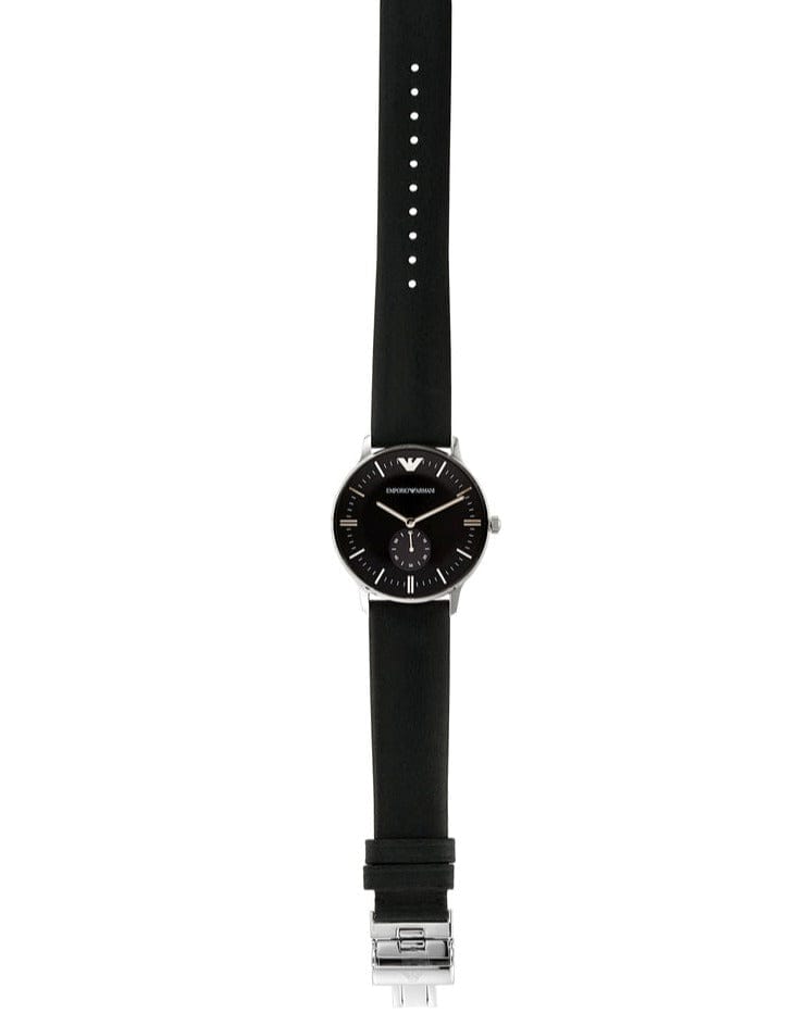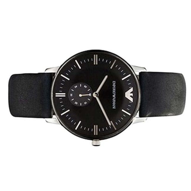 Emporio Armani Gianni Quartz Black Dial Black Leather Strap Watch For Men - AR0382
