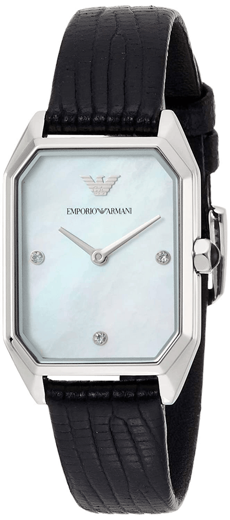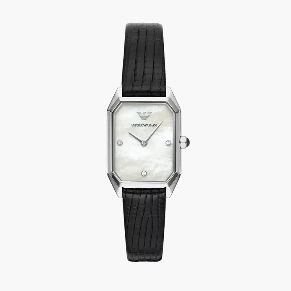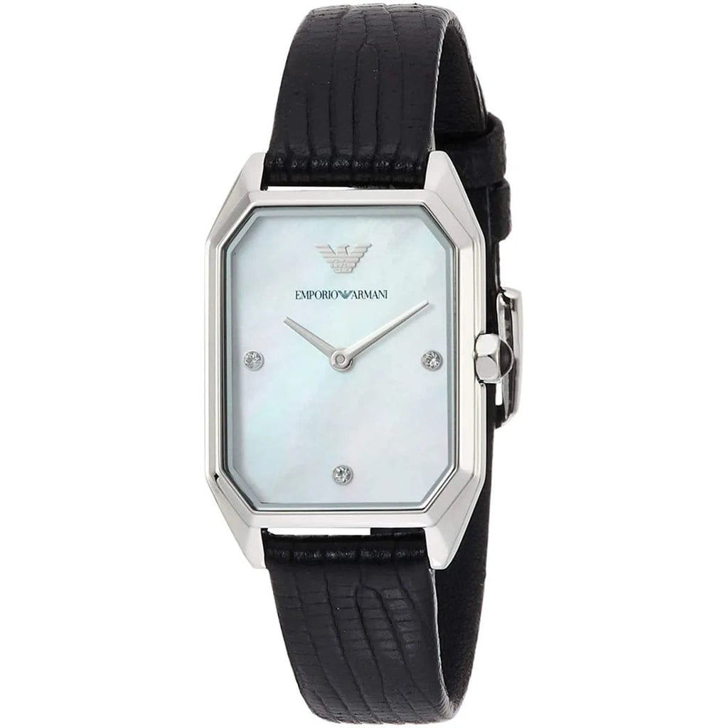 Emporio Armani Gioia Analog Mother of Pearl Dial Black Leather Strap Watch For Women - AR11148
