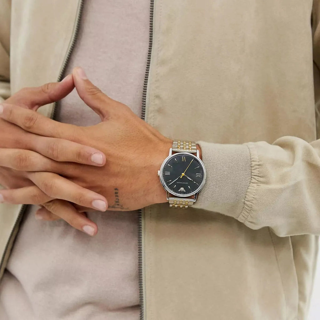 Emporio Armani Kappa Quartz Black Dial Two Tone Mesh Bracelet Watch For Men - AR11228