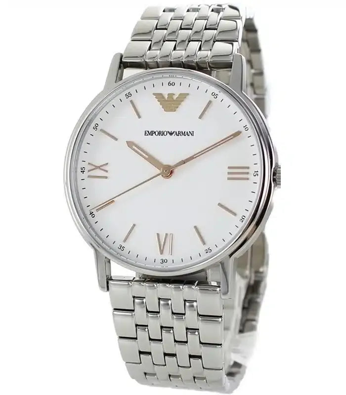 Emporio Armani Kappa Quartz White Dial Silver Steel Strap Watch For Men - AR80014