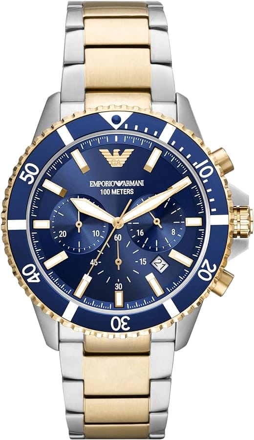 Emporio Armani Mario Chronograph Blue Dial Two Tone Steel Strap Watch For Men - AR11362