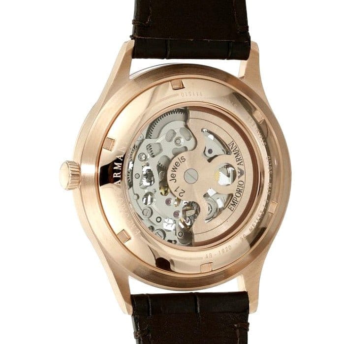 Emporio Armani Meccanico White Skeleton Dial Black Leather Strap Watch For Men - AR1924