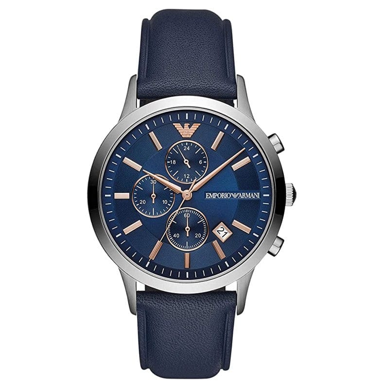 - Comes with 1 x Emporio Armani AR2434/AR2448 Renato Men's Chronograph Silver Stainless Steel Watch (Black Dial AR2434 / Blue Dial AR2448), 1 x Emporio Armani Watch Box ; 1 x Emporio Armani warranty booklet