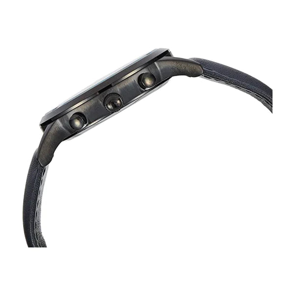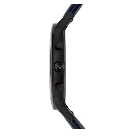 This Emporio Armani has a midnight blue leather strap and a sporty bottom with a very original striated look that makes this watch all the more sporty . The Emporio Armani watch has, among other things, a quartz movement with date and chronometer function. The Emporio Armani logo is visible at 12 noon. This watch with a very sporty chic look that the Italian designer offers us here is also equipped with a clasp with security. The dial of the Emporio Armani watch is made of stainless steel and treated with black paint.