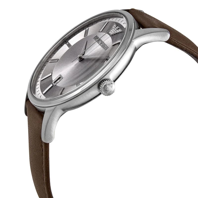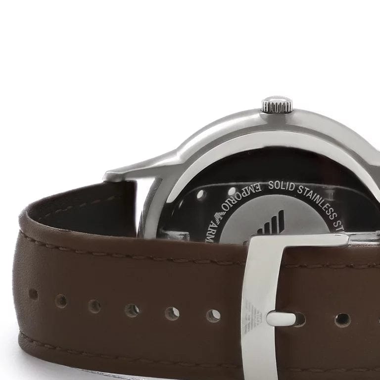 Emporio Armani Renato Quartz Silver Dial Brown Leather Strap Watch For Men - AR11185