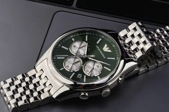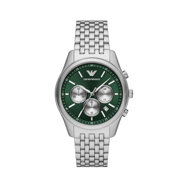 Emporio Armani Antonio Chronograph Green Dial Silver Steel Strap Watch for Men - AR11581