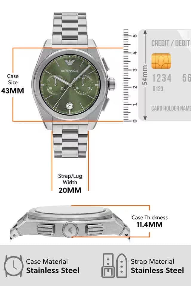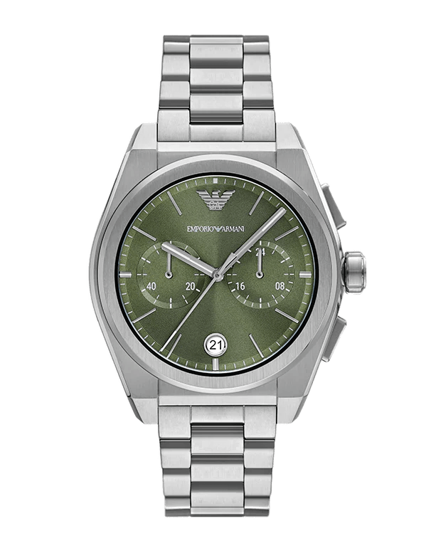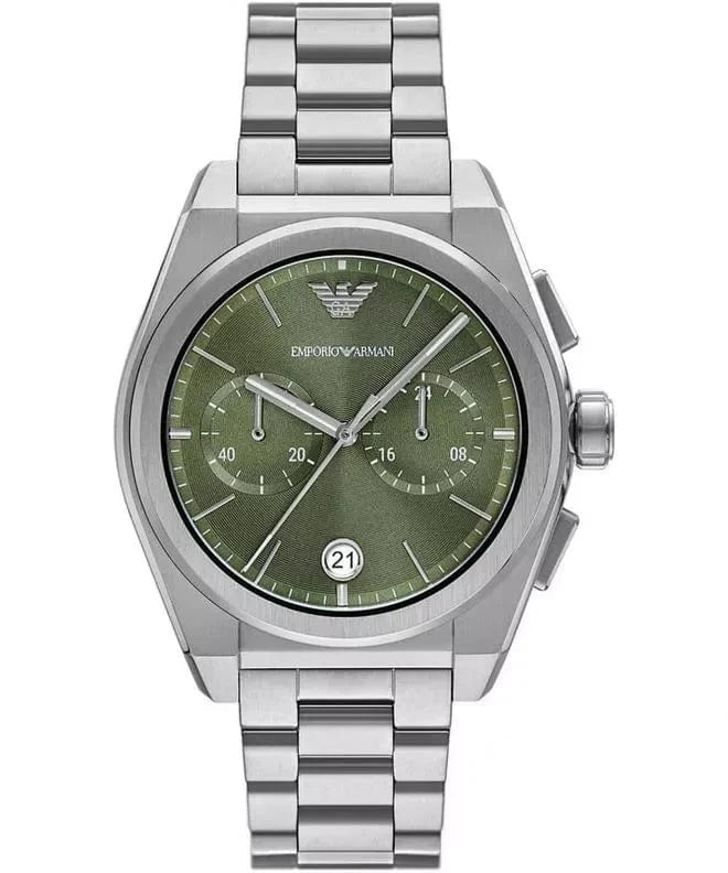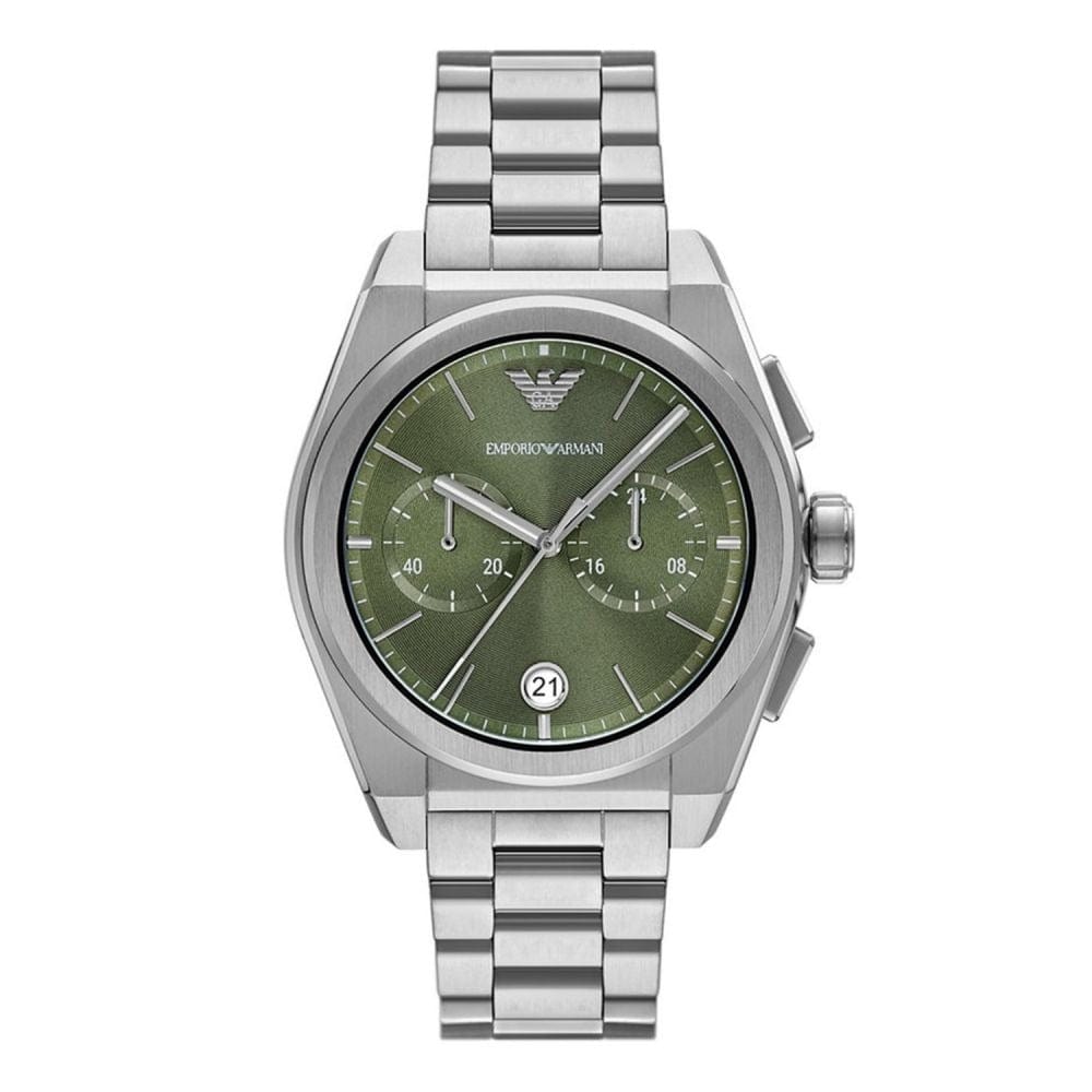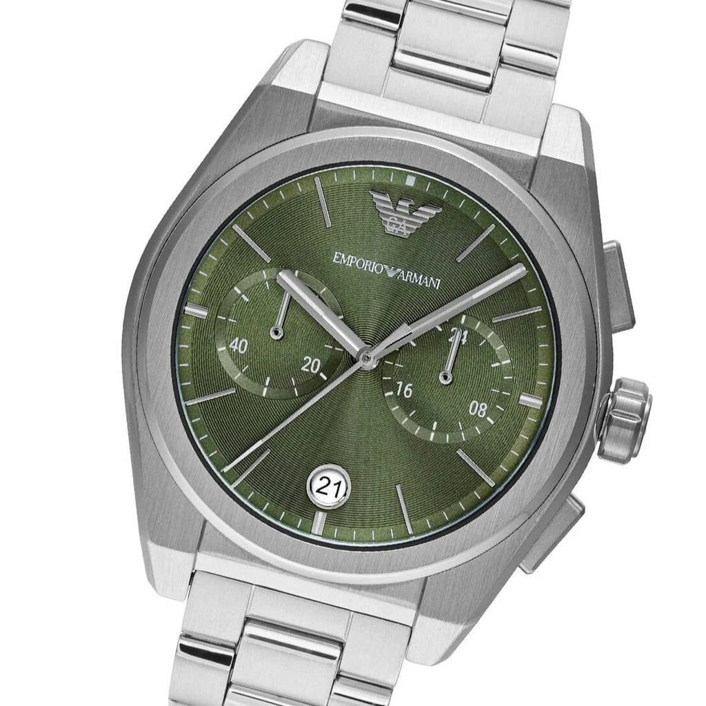 Emporio Armani Federico Chronograph Green Dial Silver Steel Strap Watch for Men - AR11640