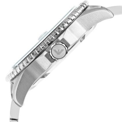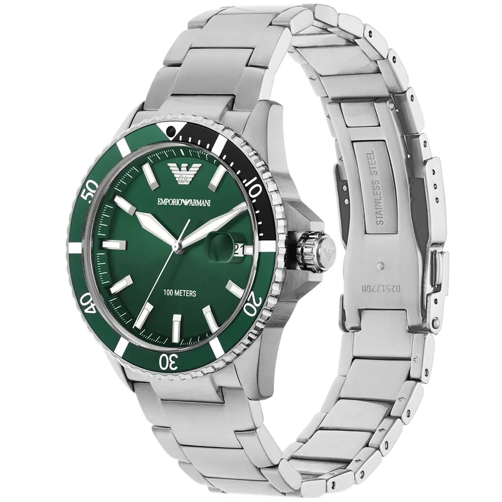 Emporio Armani Three Hand Green Dial Silver Steel Strap Watch For Men - AR11338