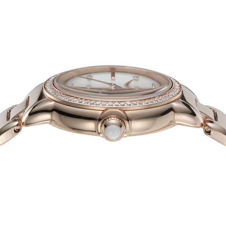 - Mother of pearl dial with mineral crystal face