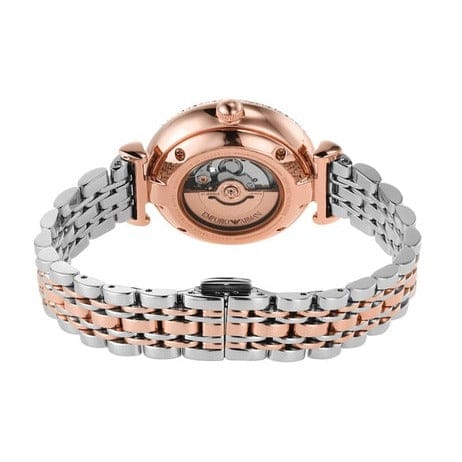 Emporio Armani Meccanico Automatic Mother of Pearl Dial Two Tone Steel Strap Watch For Women - AR60049